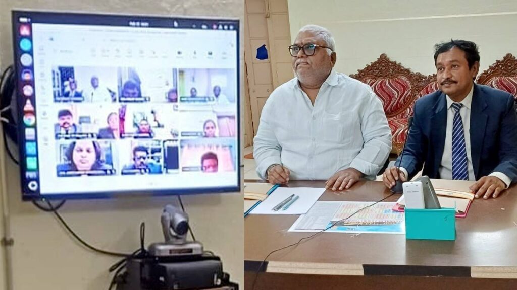 వీడియో కాన్ఫరెన్స్లో మాట్లాడుతున్న జిల్లా జడ్జి జి.కబర్ధి