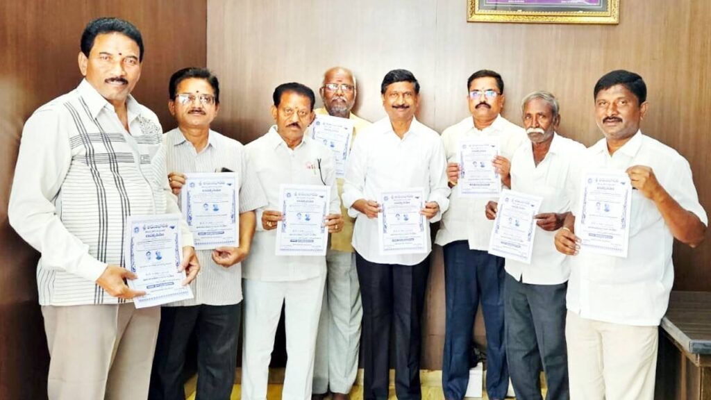 సీమాంధ్ర సారధి, బనగానపల్లె, మార్చి 12: ఉగాది పండుగ సందర్భంగా శ్రీ అరుణ భారతి సాంస్కృతిక సంస్థ ఆధ్వర్యంలో ‘ఘంటసాల గాన కచేరి’ ఏర్పాటు చేస్తున్నామని బనగానపల్లె పట్టణ మాజీ సర్పంచ్ బీసీ రాజారెడ్డి తెలిపారు. కార్యక్రమ కరపత్రాలను ఆయన గురువారం విడుదల చేశారు. ఈనెల 15వ తేదీ (ఆదివారం) సాయంత్రం 6 గంటలకు బీసీ గుర్రెడ్డి కాలనీలోని ప్రియదర్శిని స్కూల్ ఎదురుగా కచేరి ఉంటుందని చెప్పారు. లండన్ స్పిరిట్ ఆఫ్ ఘంటసాల అవార్డు గ్రహీత, సుప్రసిద్ధ సినీ గాయకులు డి.ఎ.మిత్ర బృందం(హైదరాబాద్)తో పాటు ప్రముఖ గాయని జ్యోతి, గాయకుడు హబీబ్ కూడా విచ్చేస్తున్నారని చెప్పారు. నెహ్రూ స్కూల్ విద్యార్థుల సాంస్కృతిక కార్యక్రమాలు కూడా అలరించనున్నాయన్నారు. కార్యక్రమంలో అరుణ భారతి సాంస్కృతిక సంస్థ సభ్యులు బొబ్బల మహేశ్వరరెడ్డి, బలరామయ్య, జ్యోతిష్యం వెంకట్రాముడు, భరతుడు, చంద్రమౌళీశ్వర్ రెడ్డి, విష్ణువర్ధన్ రెడ్డి, టిఎన్ఆర్ గోపాల్ రెడ్డి పాల్గొన్నారు.